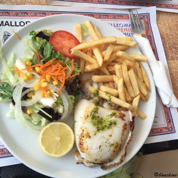Et après le bain, sepia à la plancha (mon plat favori à chacune de mes escapades espagnoles !) :