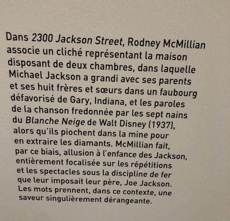 Ces œuvres sont intégrées dans le contexte de la vie et de l’œuvre de Michael Jackson avec le souci de faire émerger les enjeux culturels, sociaux et politiques qui ont marqué la trajectoire singulière de cet artiste afro-américain hors norme en écho aux événements de son époque.
