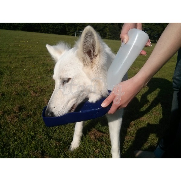 …avez -vous déjà vu des gourdes avec réservoir pour chiens (existent en 3 contenances et coûtent entre 4,90€ pour 250ml et 7,90€ pour 750ml) ?