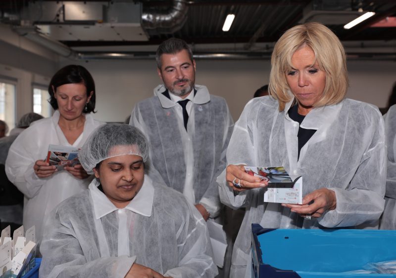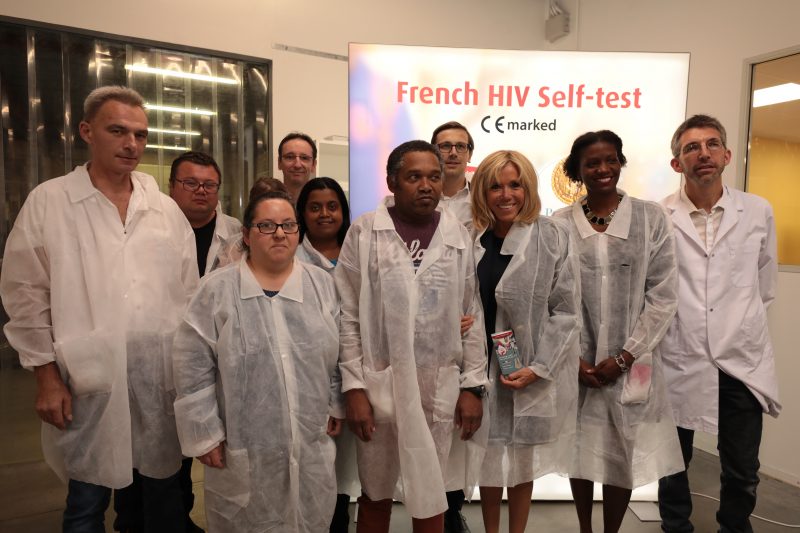 La Première Dame, très engagée dans le domaine du handicap, s’est donc rendue sur le nouveau site d’assemblage d’autotest VIH® à Villiers-le-Bel (95).