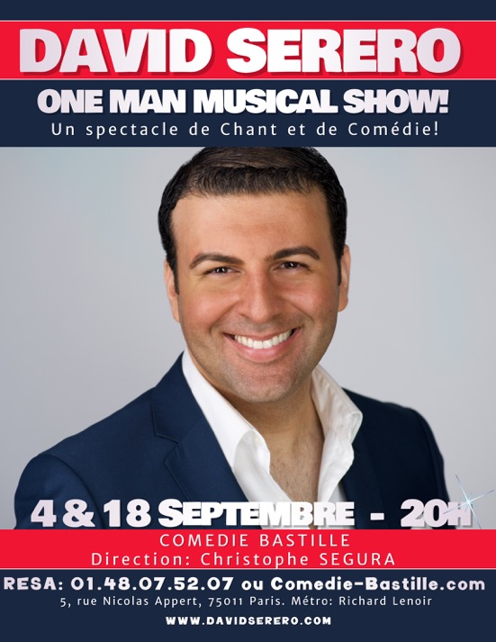 Le spectacle de David Serero à la Comédie Bastille auquel j’ai assisté lundi soir était très drôle. Et c’est toujours un plaisir d’écouter ces grands classiques des comédies musicales américaines (New York, New York, Diamonds are the best girl’s friends, Singin’ in the rain… etc).