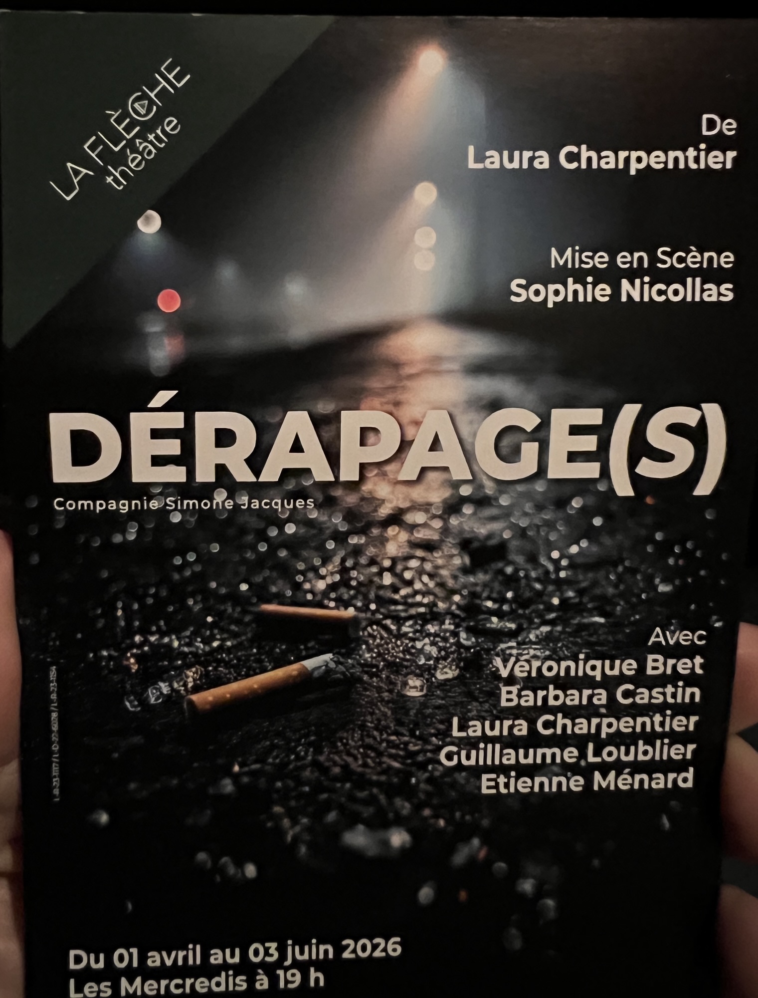 Il serait tentant de détailler l’intrigue, de poser les éléments, de guider le spectateur. Mais ce serait trahir l’essence même de la pièce. Car Dérapage(s) se vit comme une expérience. Une mécanique minutieuse qui se dévoile progressivement, et dont le véritable impact repose sur ce que l’on découvre – ou que l’on croit découvrir – au fil du spectacle.