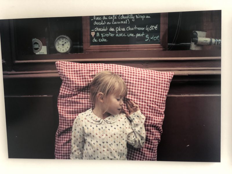 Je vous montre seulement deux photos de cette série d’enfants la tête sur un oreiller. Il y en a énormément. Chacun fait un rêve symbolisé par ce qui l’entoure…
