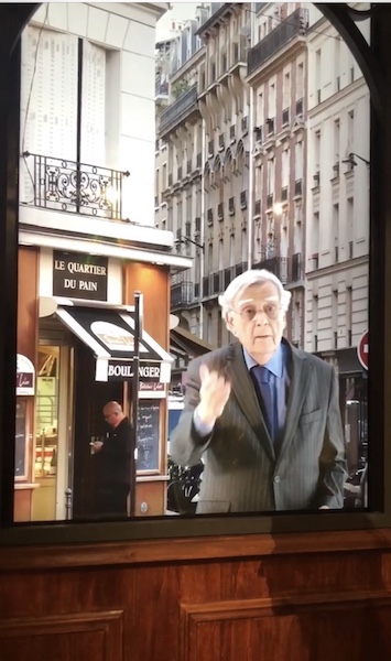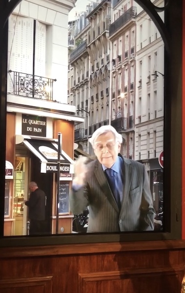 Bernard Pivot gesticule derrière une vitrine invitant les visiteurs à découvrir …