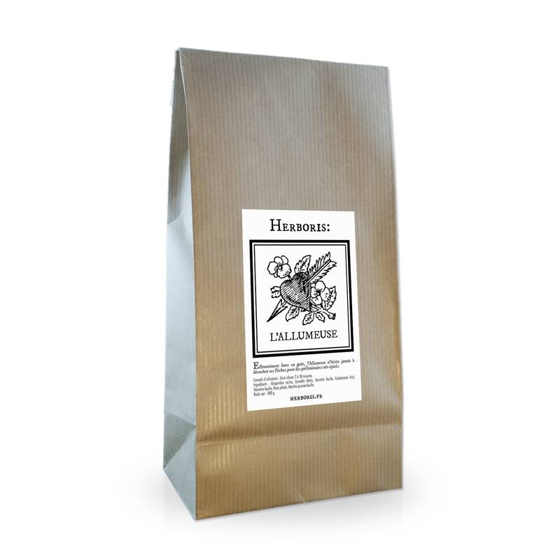 Chez Herboris, je vous recommande « l’Allumeuse », second produit de leur gamme de tisanes composées que je teste (après la Baroudeuse qui est un savant mélange de Menthe nahnah en feuilles, de fruit de Badiane fruit et de racine de Réglisse)