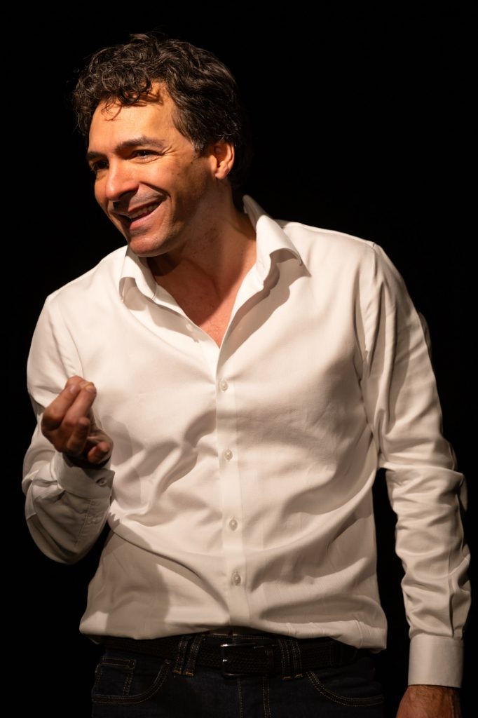 Dès le début, Georges Demory s’adresse directement au public, avec l’énergie d’un stand-upper et l’enthousiasme d’un amoureux fou d’art lyrique.