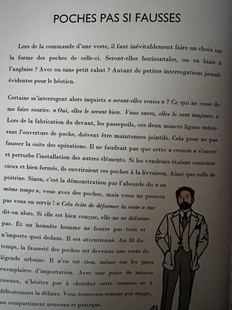 Cet élégant recueil – incontournable à mon sens pour qui s’intéresse à la mode masculine (et aux belles illustrations !) – regorge de sujets à la fois divertissants et instructifs.