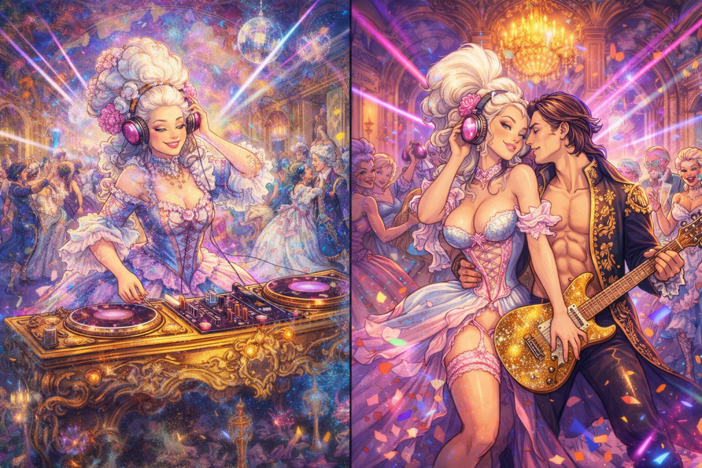 Ici, le XVIIIe siècle dialogue avec les beats électroniques, les silhouettes deviennent œuvres vivantes, et chaque invité participe à une fresque collective spectaculaire.