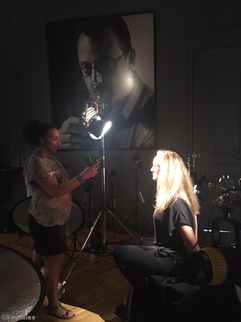 Deux plateaux sont consacrés à la réalisation des prises de vues et au maquillage (Pour la petite histoire, Harcourt a développé sa propre ligne de produits pour les sourcils après avoir constaté que la majeure partie des retouches concernaient les sourcils …)