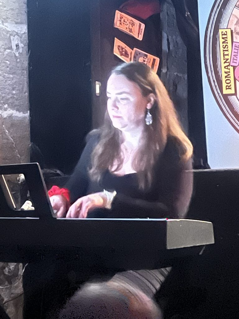 Pour chaque période, l’artiste raconte une anecdote savoureuse, un détail humain, quelque chose qui fait sens… avant d’interpréter un air soigneusement choisi, accompagnée au piano par la talentueuse Aurélie de Solère.