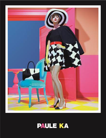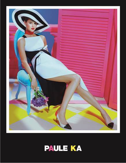 A l’origine de ces quatre tableaux, Alithia Spuri-Zampetti, la nouvelle directrice de la création de PAULE KA et le photographe britannique Miles Aldridge qui se sont inspirés des peintures flamboyantes aux contours cubistes du peintre américain Richard Lindner et des scènes de vie de la période niçoise de Matisse pour les réaliser…