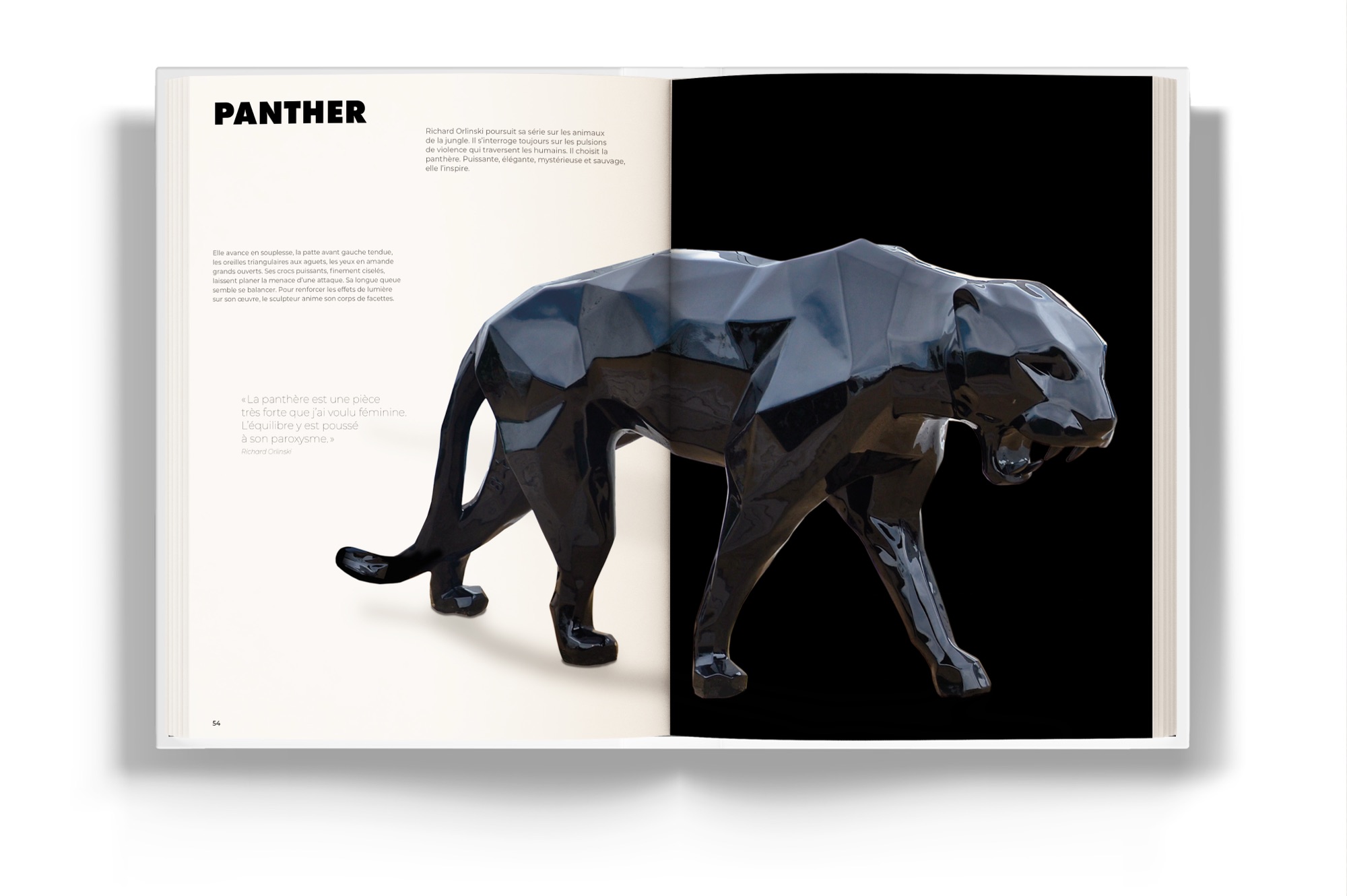 Mais le livre rappelle également que ce bestiaire n’est qu’une porte d’entrée : Richard Orlinski ne sculpte jamais l’animal pour ce qu’il est, mais pour ce qu’il symbolise : la force, l’instinct, l’élan vital.