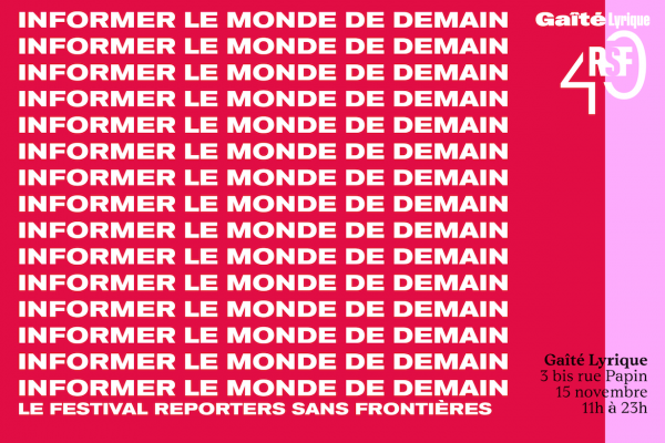 RSF organise pour la première fois et en clôture de cette année-anniversaire, son Festival « Informer le monde de demain » le 15 novembre, à Paris, à La Gaité Lyrique.