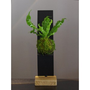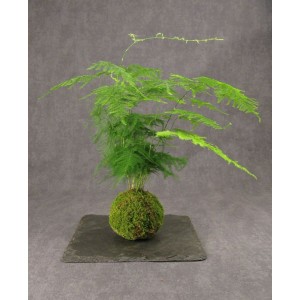 Le Kokedama est une plante qui a pris racine dans une sphère de terreau que l’on a entourée de mousse (la mousse est maintenue par du fil de coton – vert évidemment )