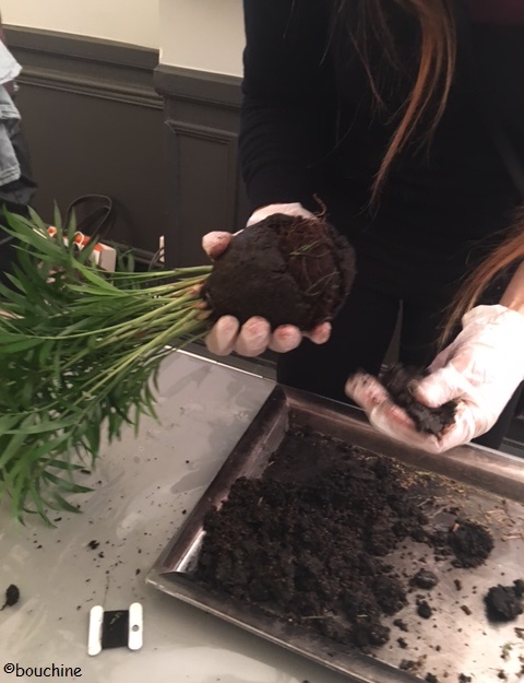 Après m’avoir aidée à faire une sphère bien ronde, Adrien et son assistant m’ont expliqué comment arroser ma plante (rien de plus simple, il faut juste, environ une fois par semaine, la poser – environ une vingtaine de minutes, le temps que l’eau soit absorbée – dans une soucoupe d’eau).